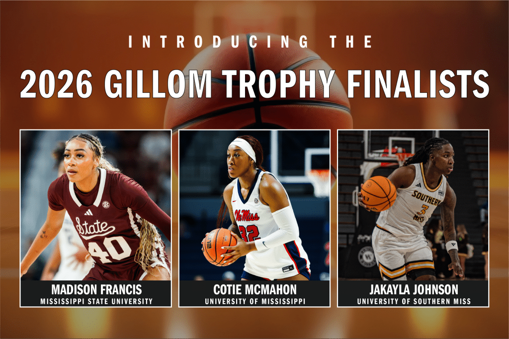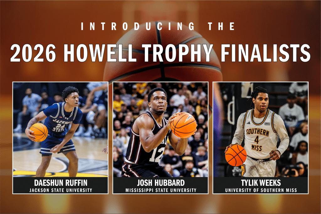 The Mississippi Sports Hall of Fame & Museum is proud to announce the finalists for the 2026 Howell and Gillom Trophies, presented annually to the state’s top men’s and women’s college basketball players. The awards are presented by Pearl River Resort and the Mississippi Band of Choctaw Indians (MBCI). Selected by a statewide panel of media members, this year’s finalists represent the best of college basketball across Mississippi’s four-year institutions.